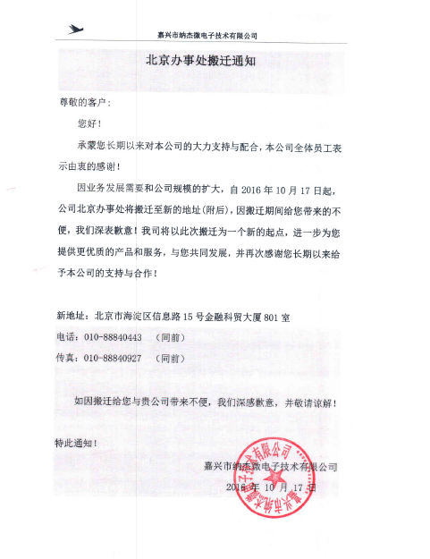 北京办事处搬迁通知